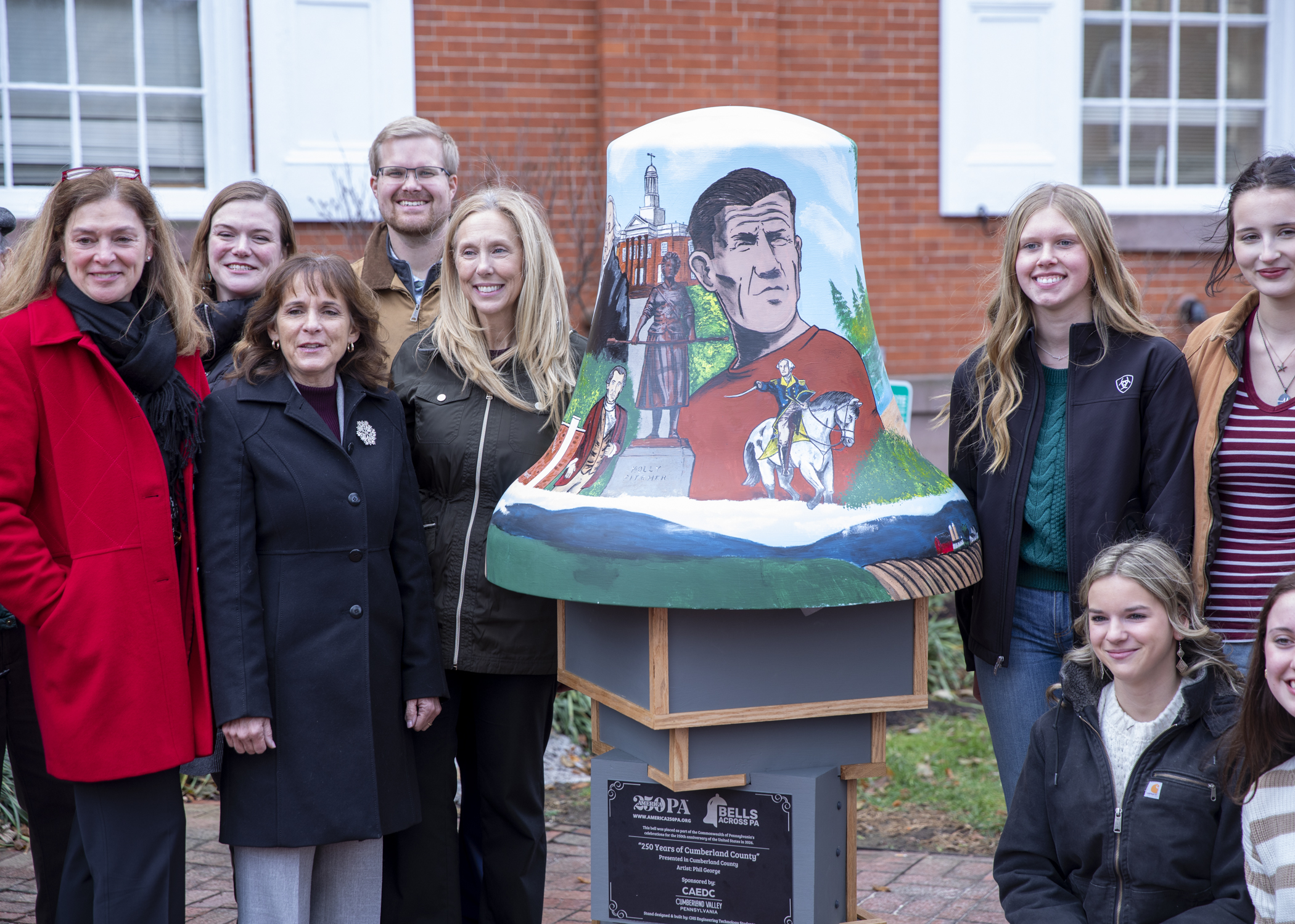 I had the honor of attending today’s unveiling of Cumberland County’s America250PA commemorative bell at the Veterans Memorial Courtyard in Carlisle. This distinguished 3-foot fiberglass bell, masterfully crafted by local artist Phil George, stands as a symbol of the rich history of Cumberland County. It is part of the Bells Across PA initiative, a statewide tribute commemorating America’s 250th anniversary by installing unique bells in each of Pennsylvania’s 67 counties.